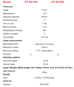 The bestseller theodolite in China market. KT-02/05 L is with Laser pointer and laser plummet.